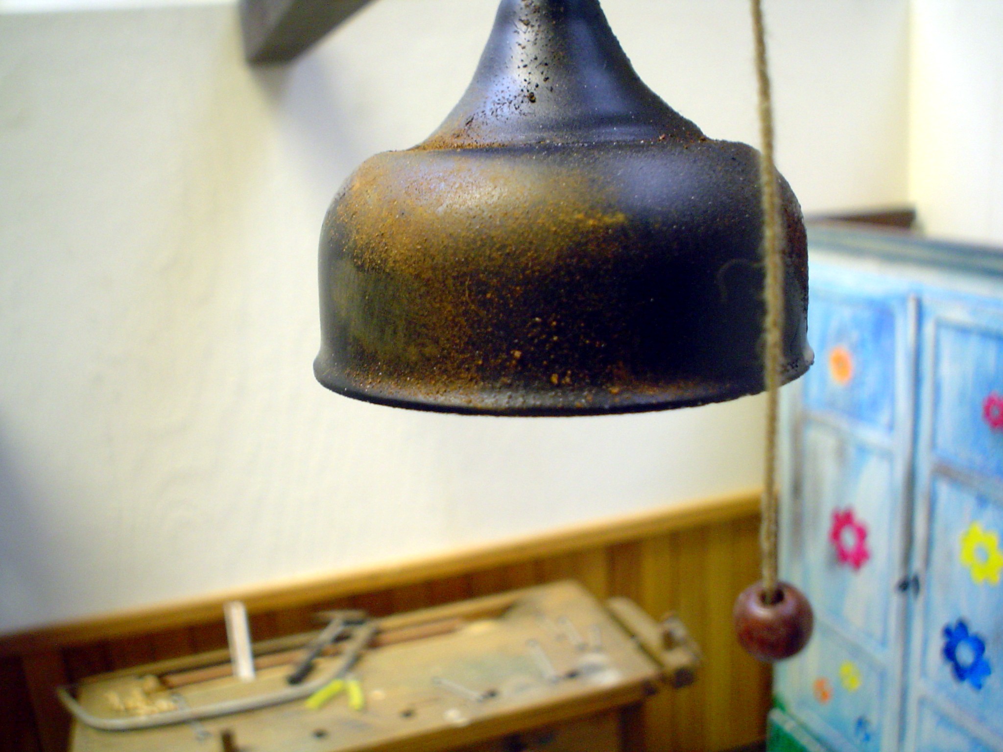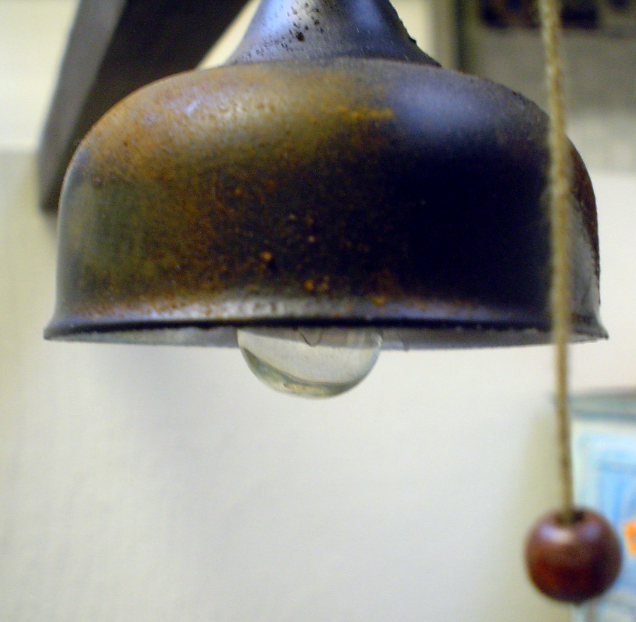 Die alte Lampe -bedienbar über einen Zugschalter- hat was.